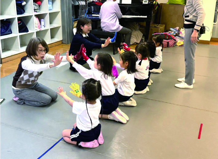用具を使った指示行動(ボール・縄跳び・平均台など)、表現、わらべ歌を使った伝承遊び
